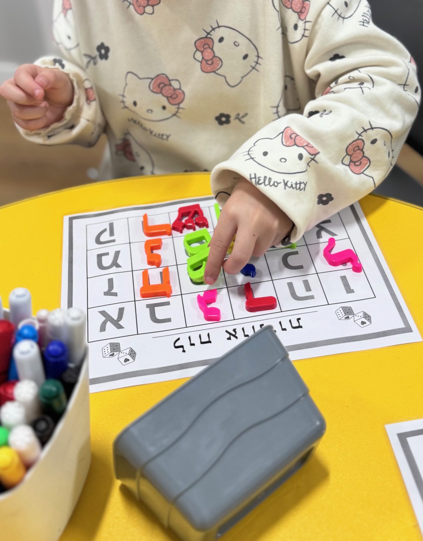 במפגשים אנחנו מתרגלים הכרת אותיות וצלילים, צליל פותח וסוגר, כתיבה פונטית, זיהוי מספרים ופעולות חשבון בסיסיות, מוטוריקה עדינה וכתיבה נכונה, מיומנויות רגשיות ועוד המון.